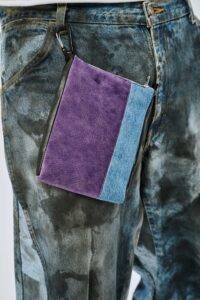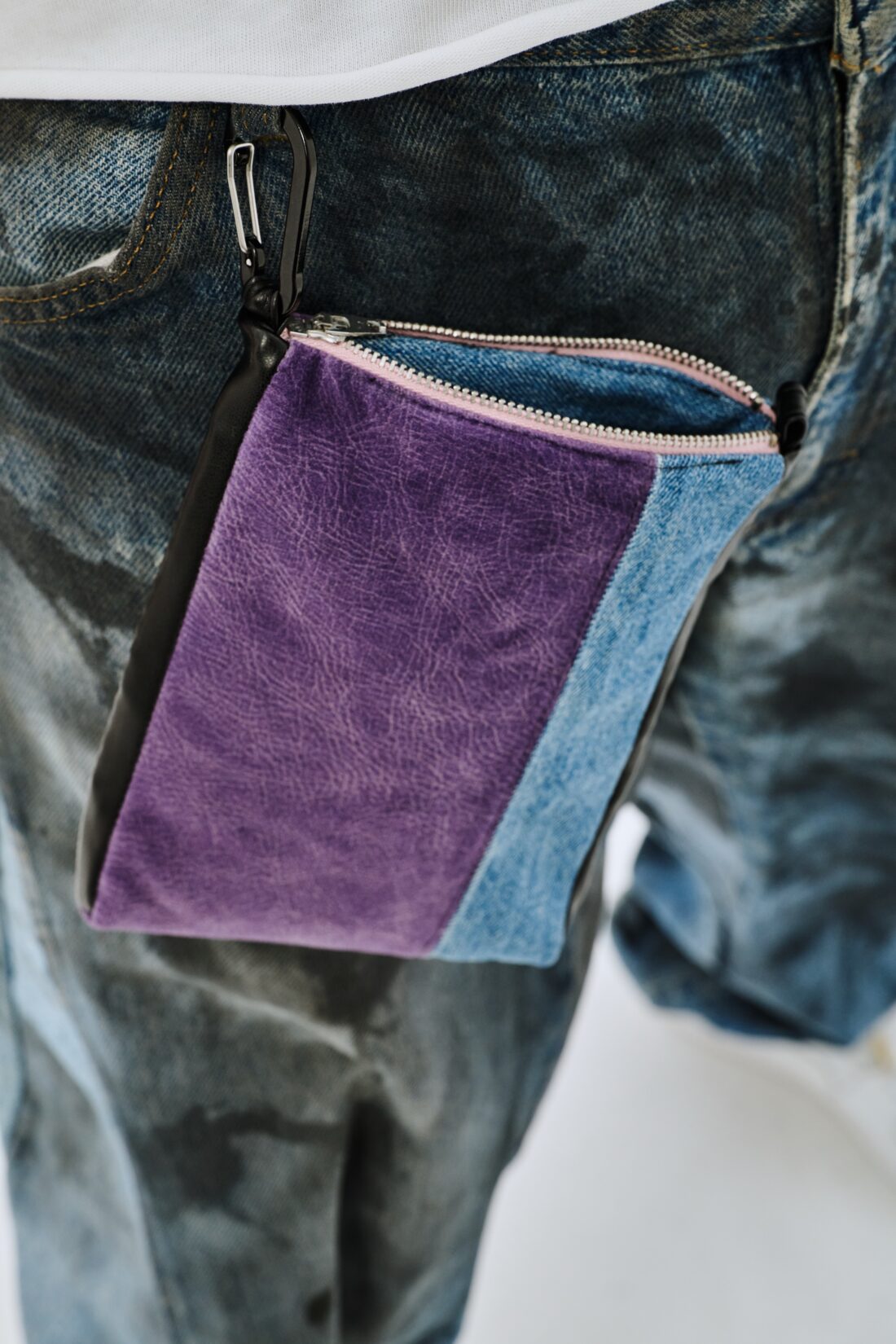 Удобный кошелек из велюра с одним карманом на молнии. Подойдет для ношения пары колод карт или зубной щетки. Идет в комплекте с карабином для крепления к любимым джинсам.