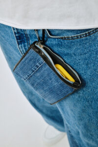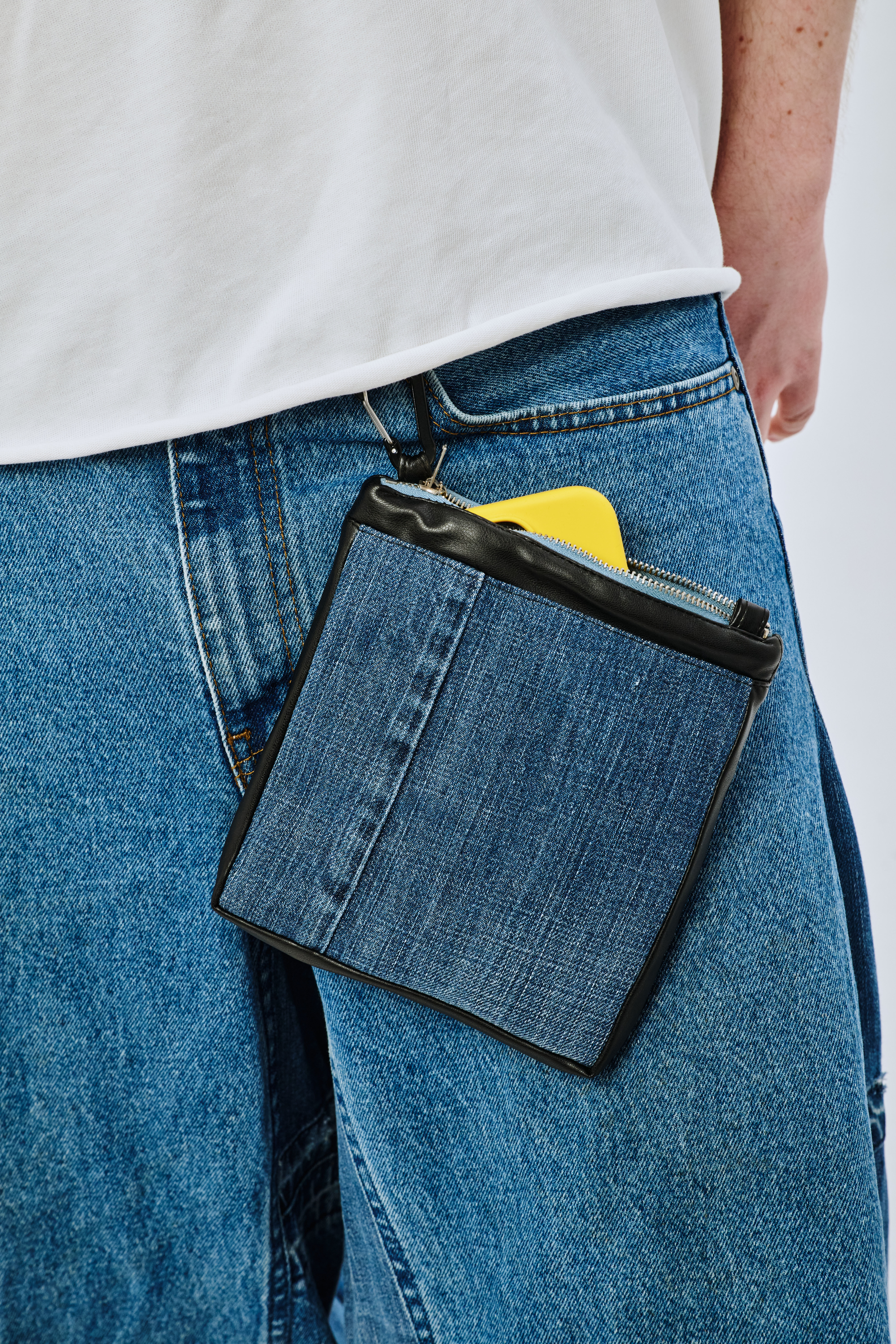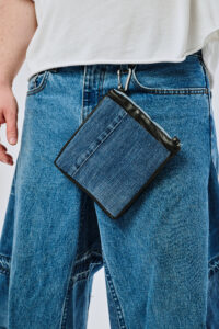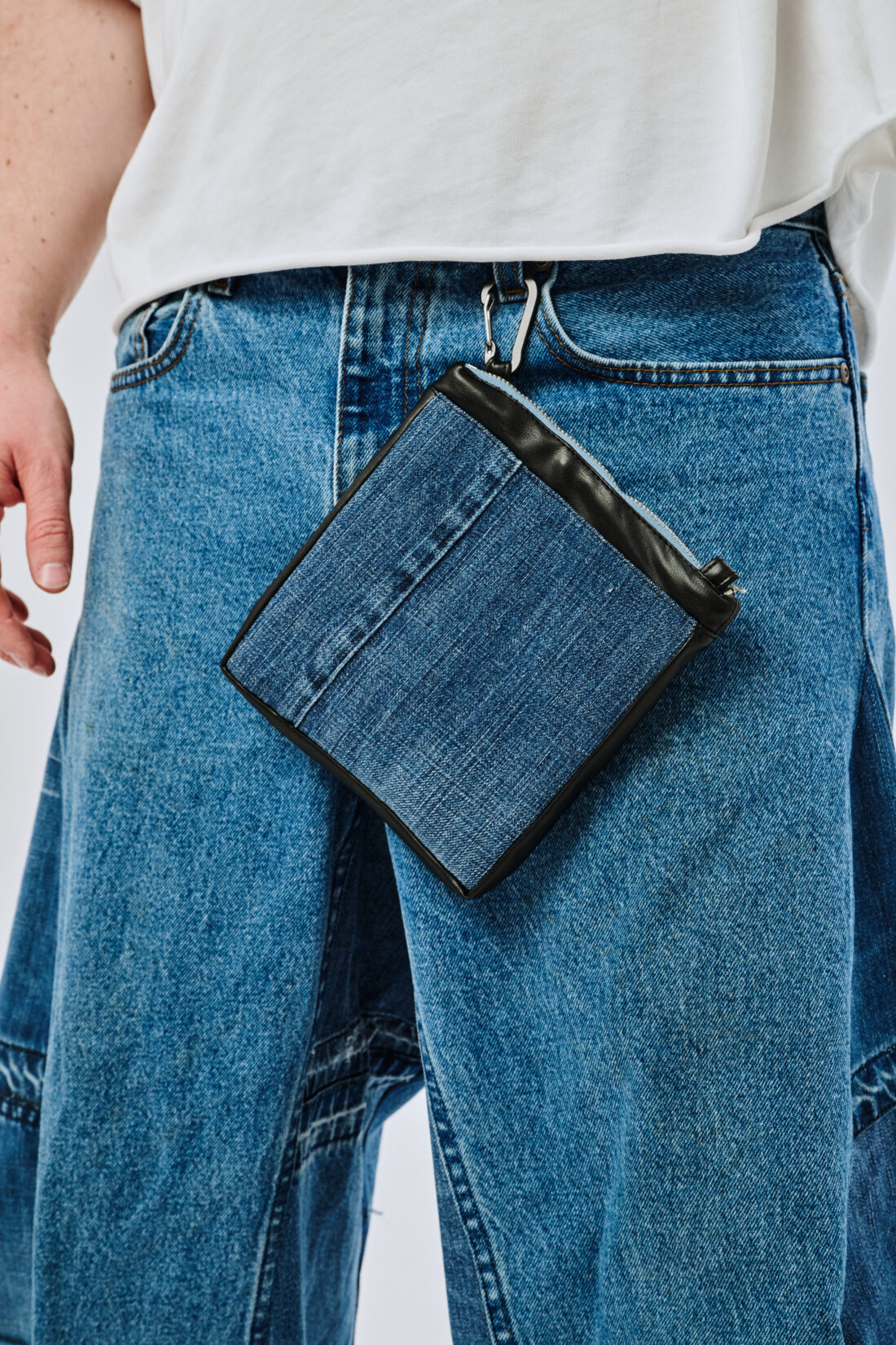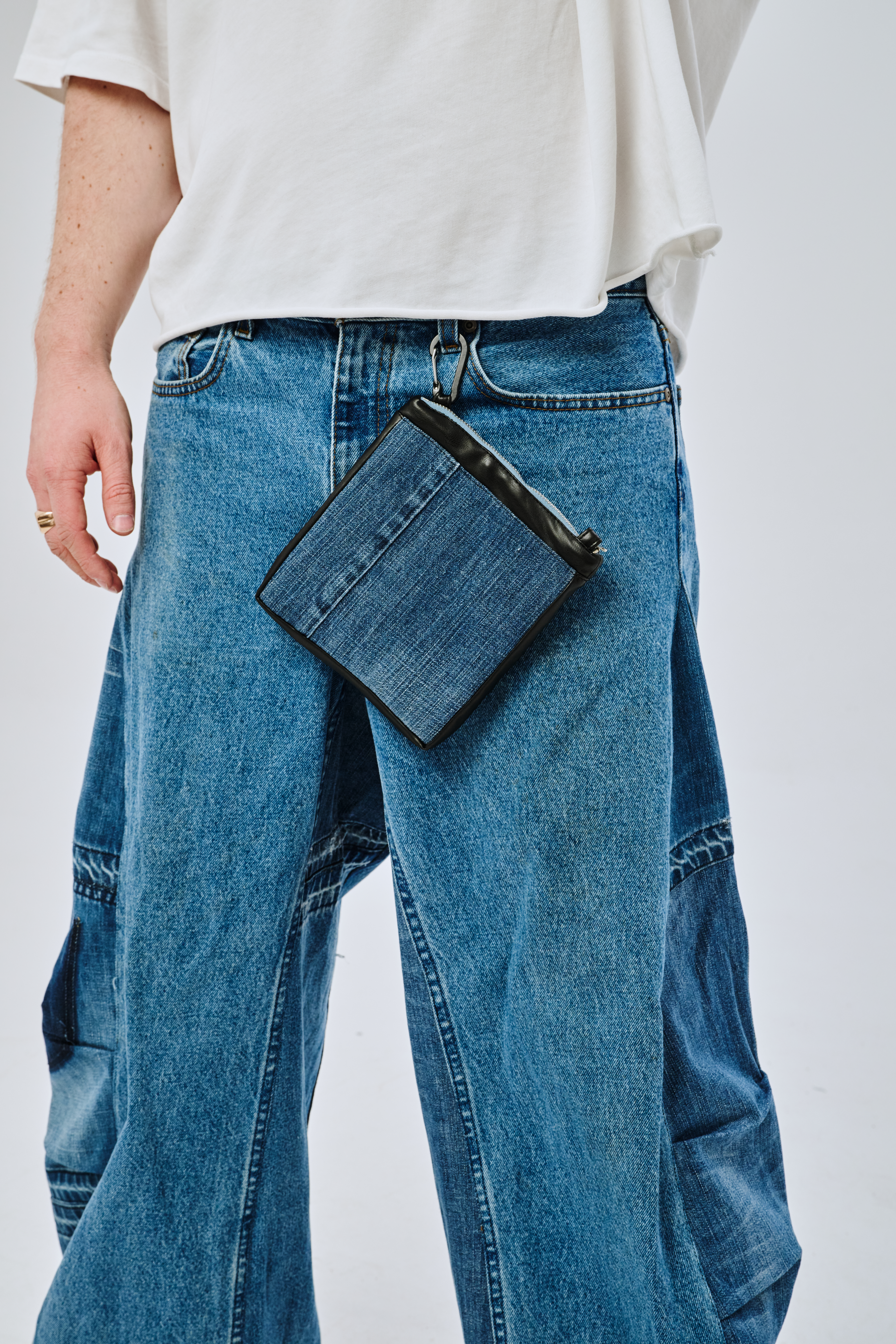 Удобный кошелек из денима с одним карманом на молнии, обитым велюром изнутри. Подойдет для ношения колоды карт и горстки серебрянников. Идет в комплекте с карабином для крепления к любимым джинсам.