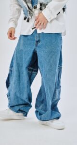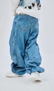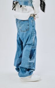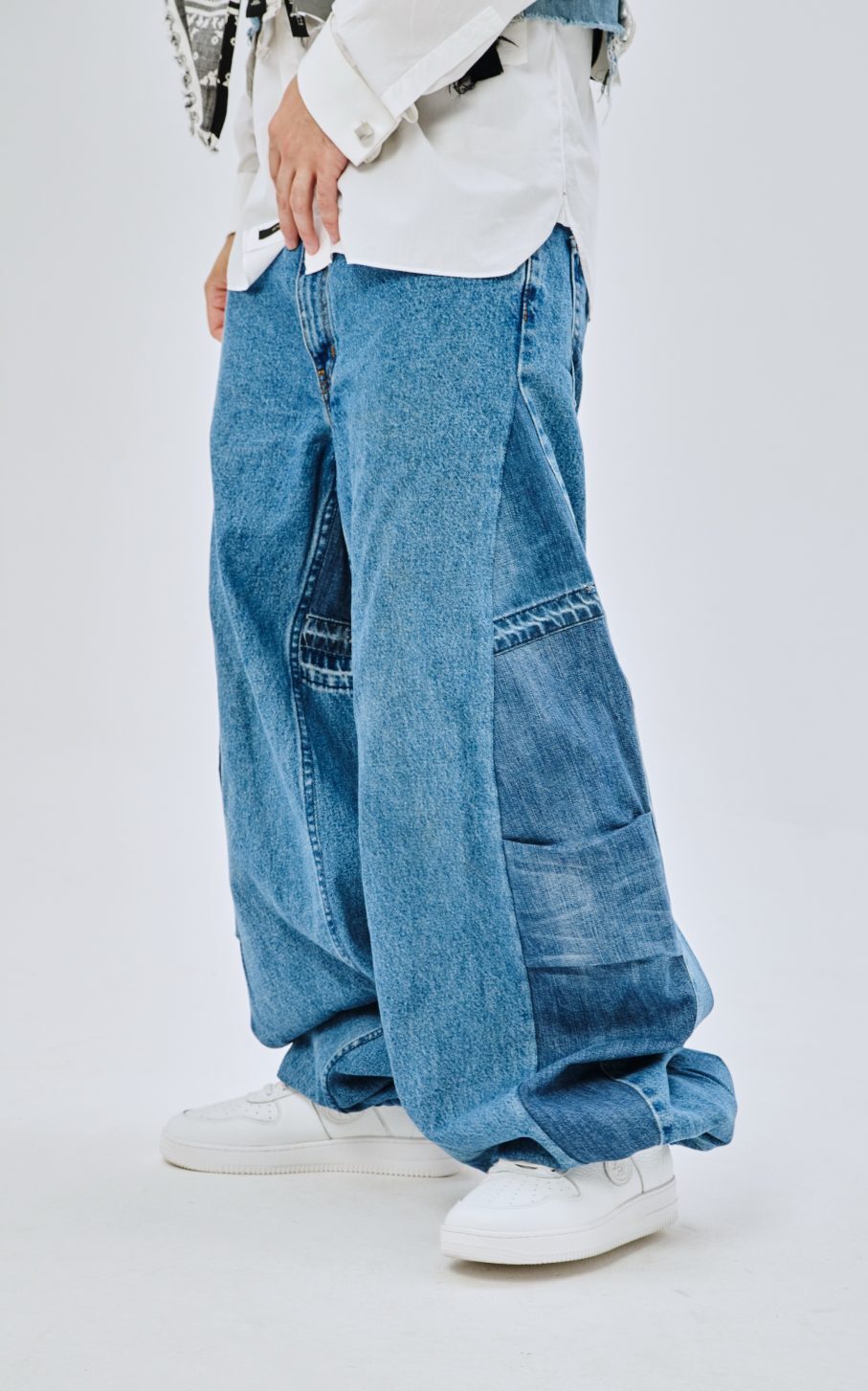 Все гениальное просто: идеальный из всех возможных цвет денима, фирменные расширения distxrtedcustom по бокам, манжеты снизу, которые не дадут джинсам волочиться по земле, а также супер оверсайз крой.