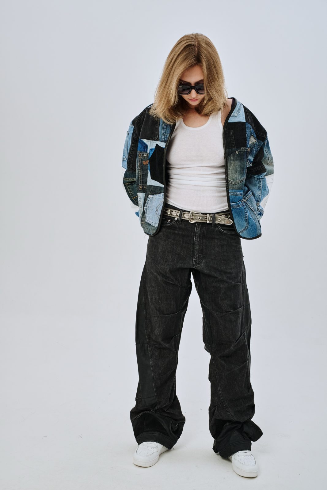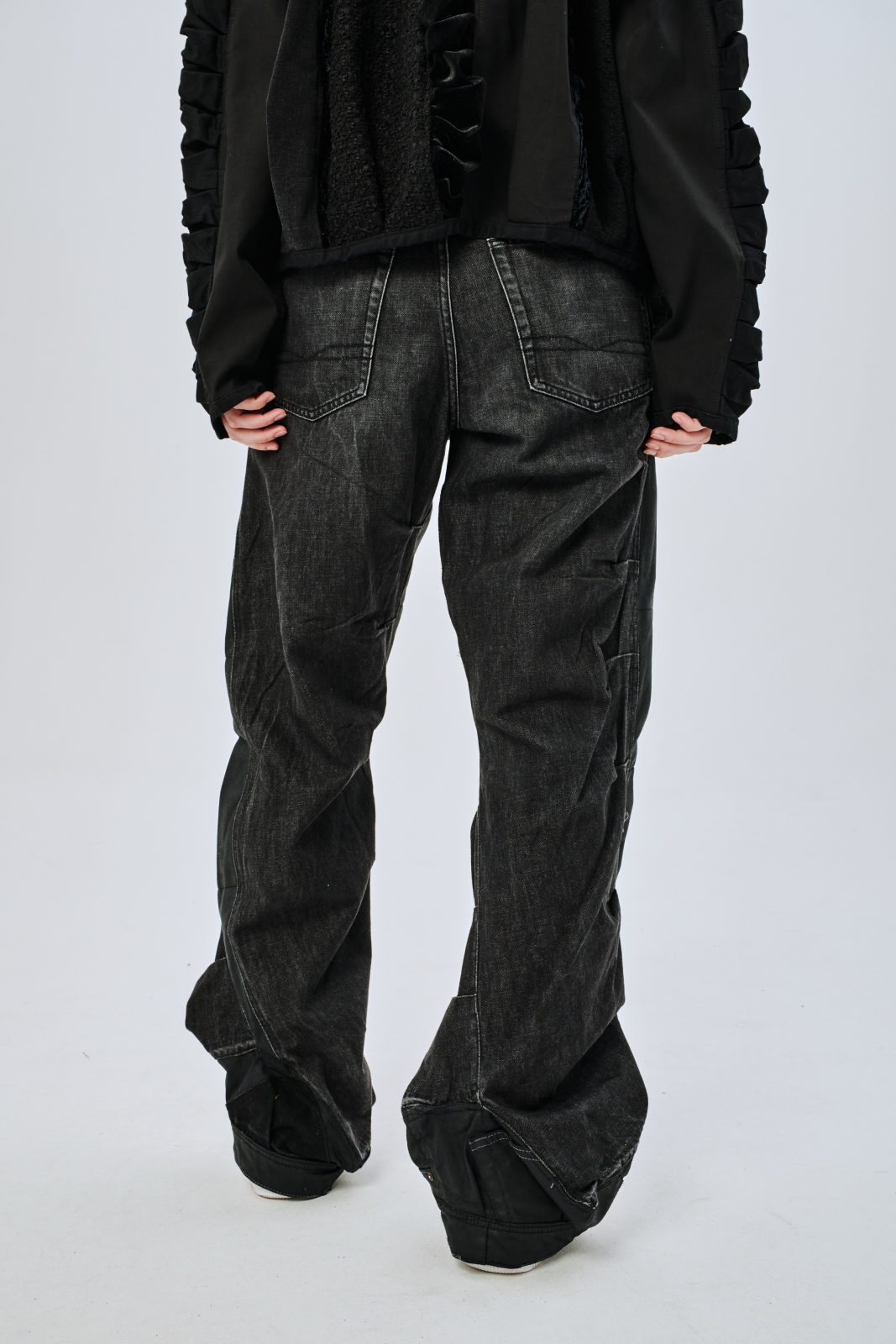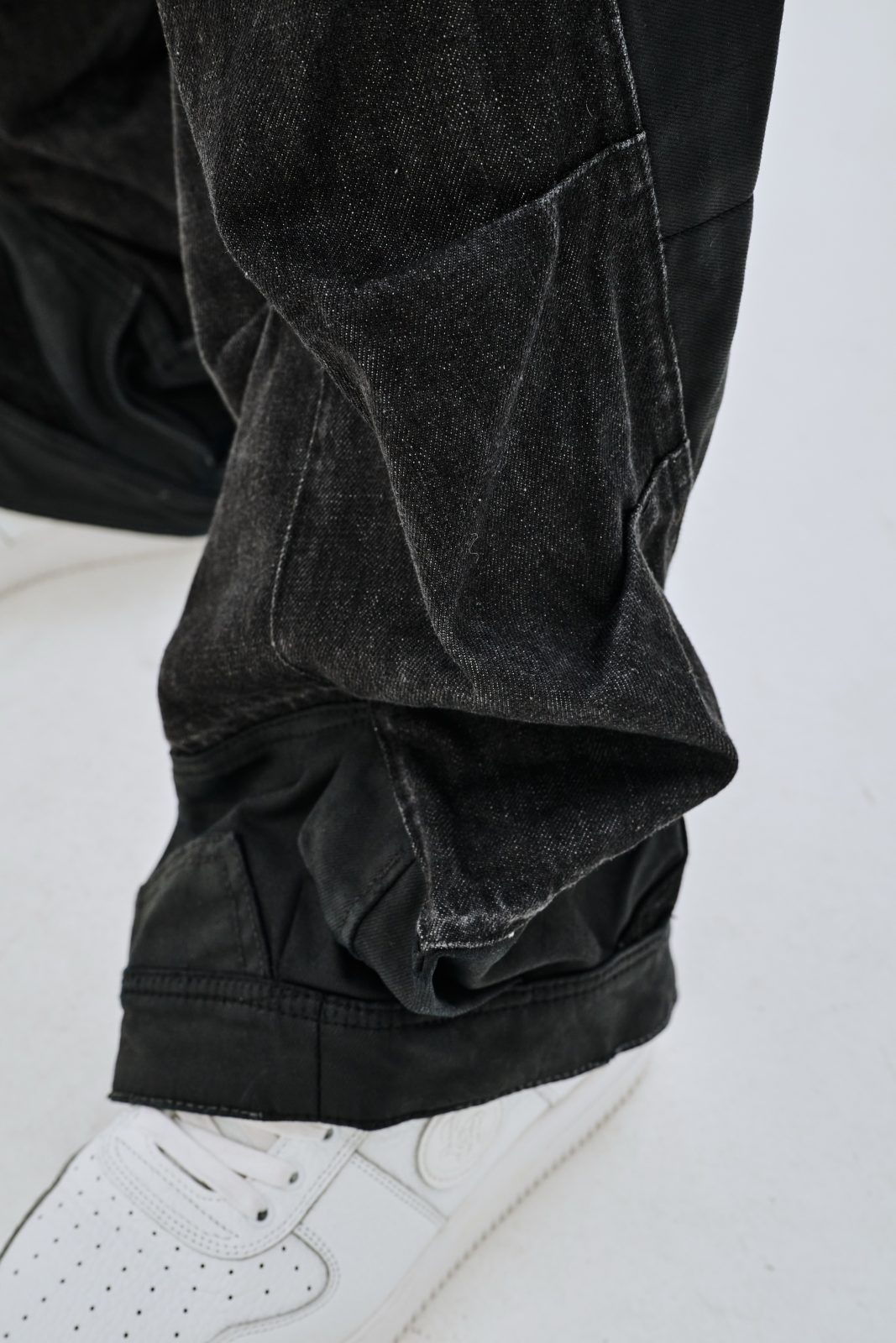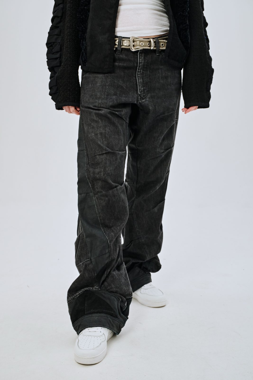 Ассиметричная сборка по краям в сочетании с вощеным хлопком создают уникальную пару джинс, которую уже нельзя купить. Фирменные расширения по бокам и манжеты снизу позволят пройти через все этапы рейва без малейшего ущерба для себя любимого.