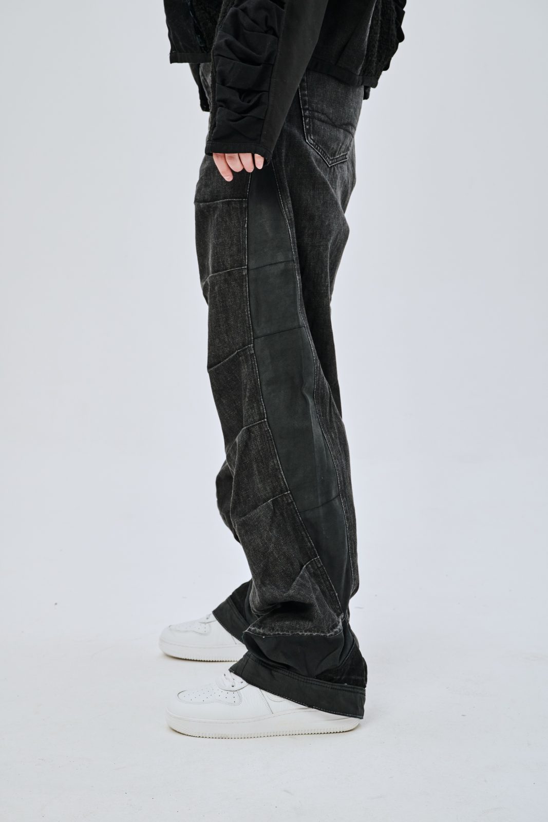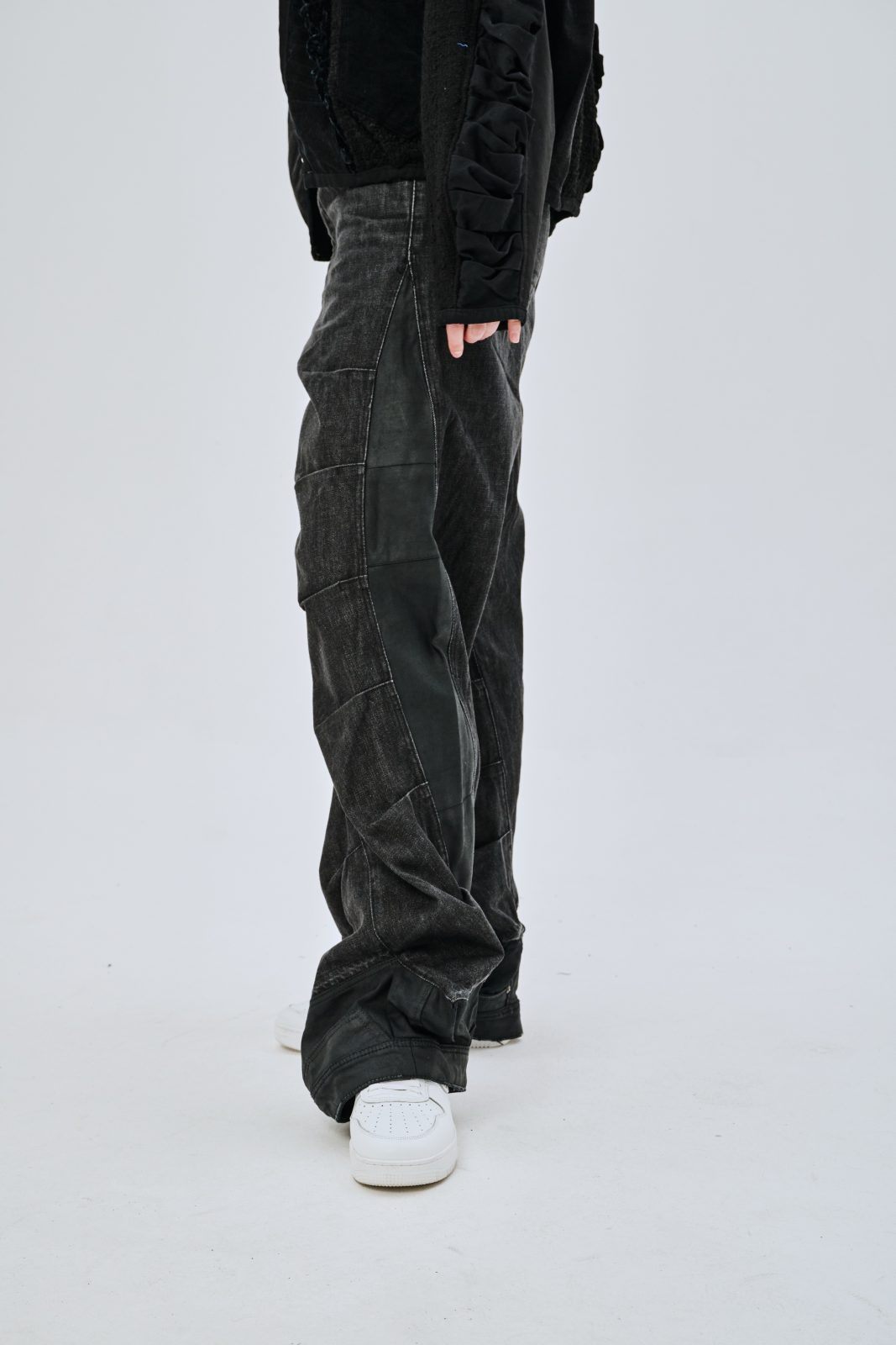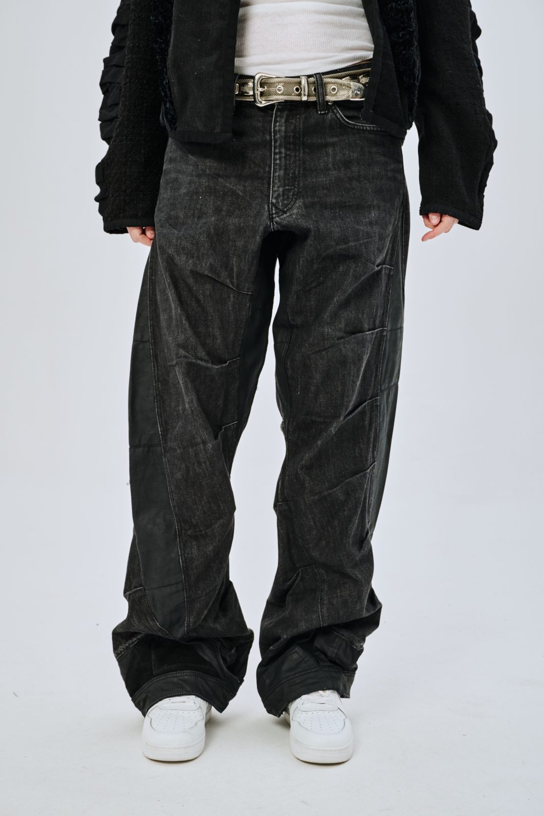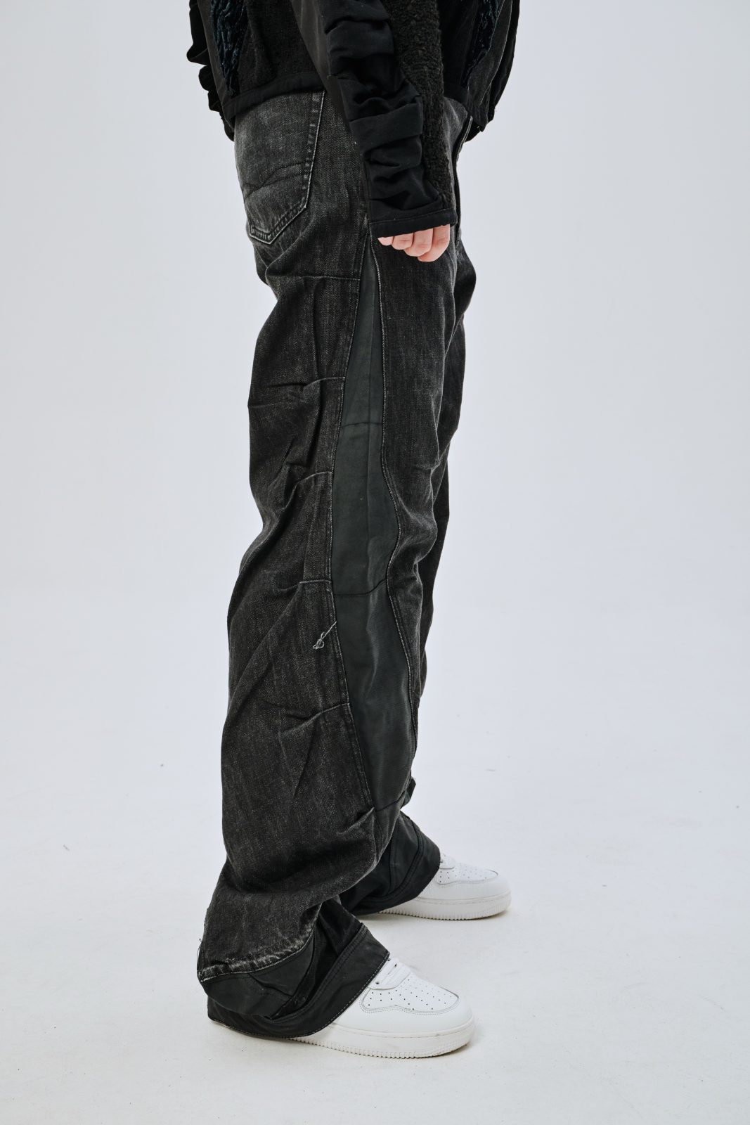 Ассиметричная сборка по краям в сочетании с вощеным хлопком создают уникальную пару джинс, которую уже нельзя купить. Фирменные расширения по бокам и манжеты снизу позволят пройти через все этапы рейва без малейшего ущерба для себя любимого.