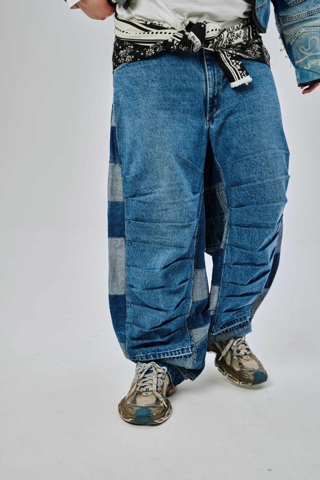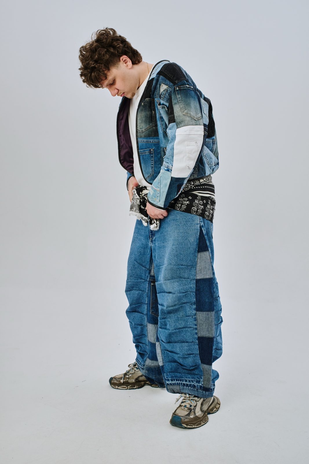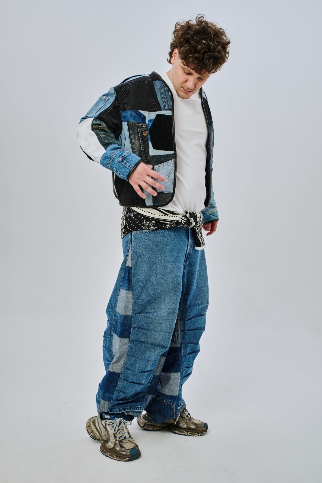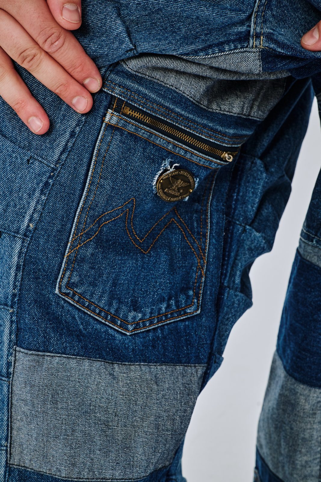 Рифленые джинсы вдохновлены Лейс со вкусом BBQ. Для изготовления боковых расширителей для этих джинс потребовалось истребление двух пар другого денима.
