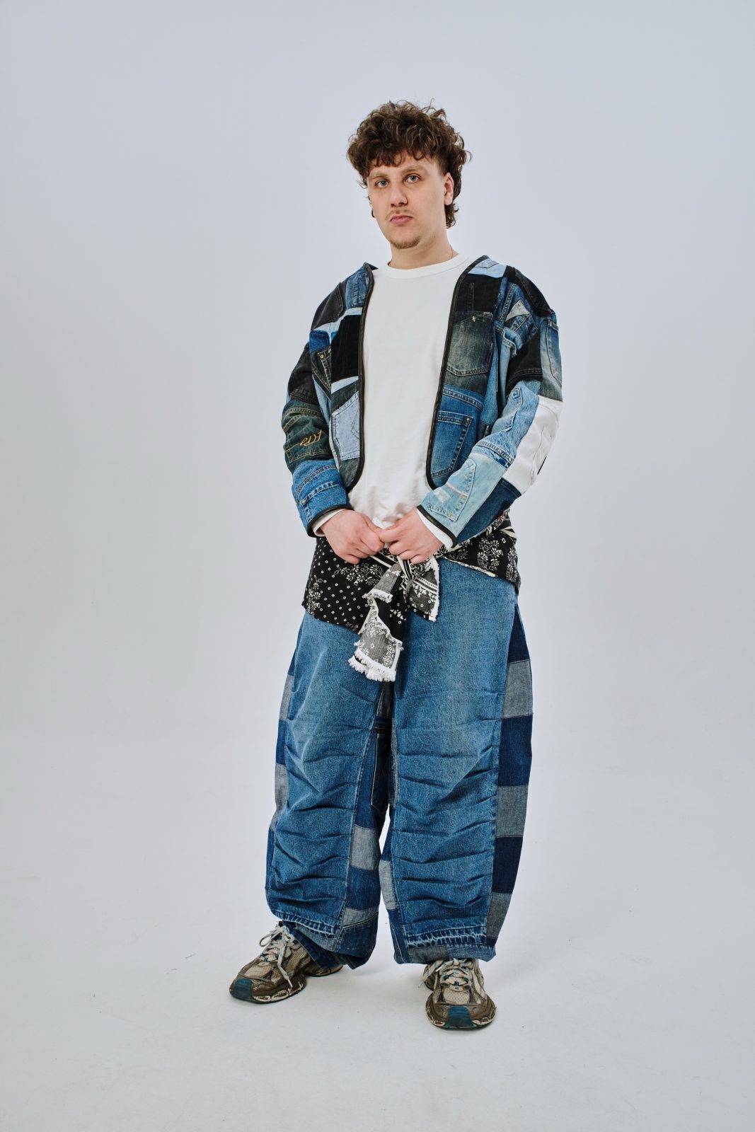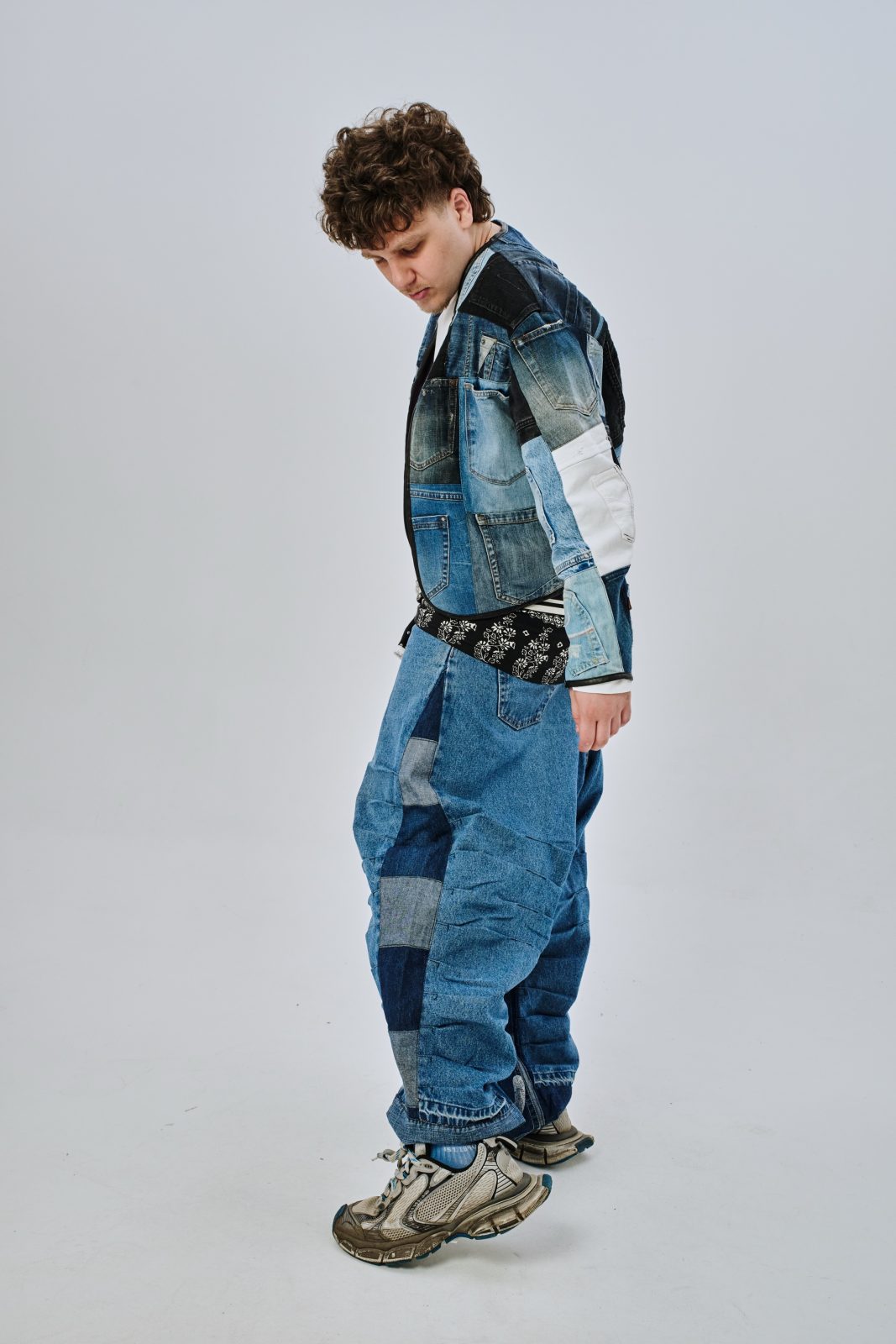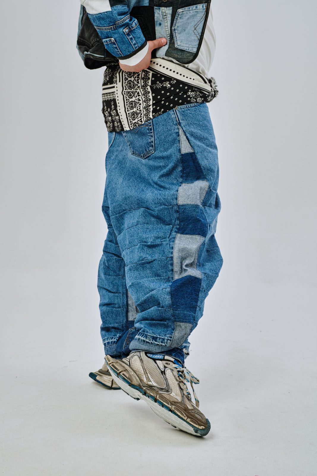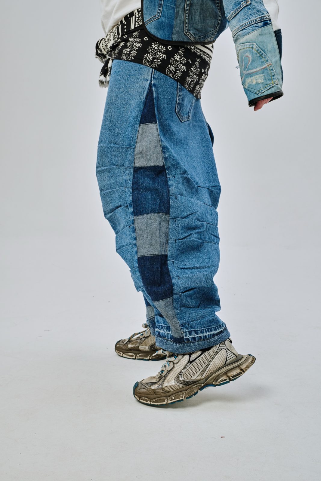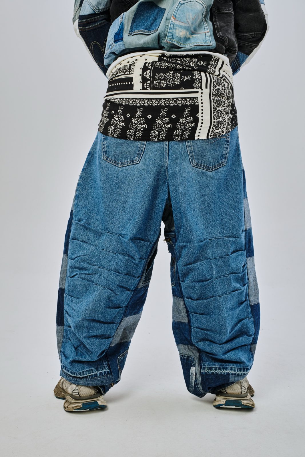 Рифленые джинсы вдохновлены Лейс со вкусом BBQ. Для изготовления боковых расширителей для этих джинс потребовалось истребление двух пар другого денима.