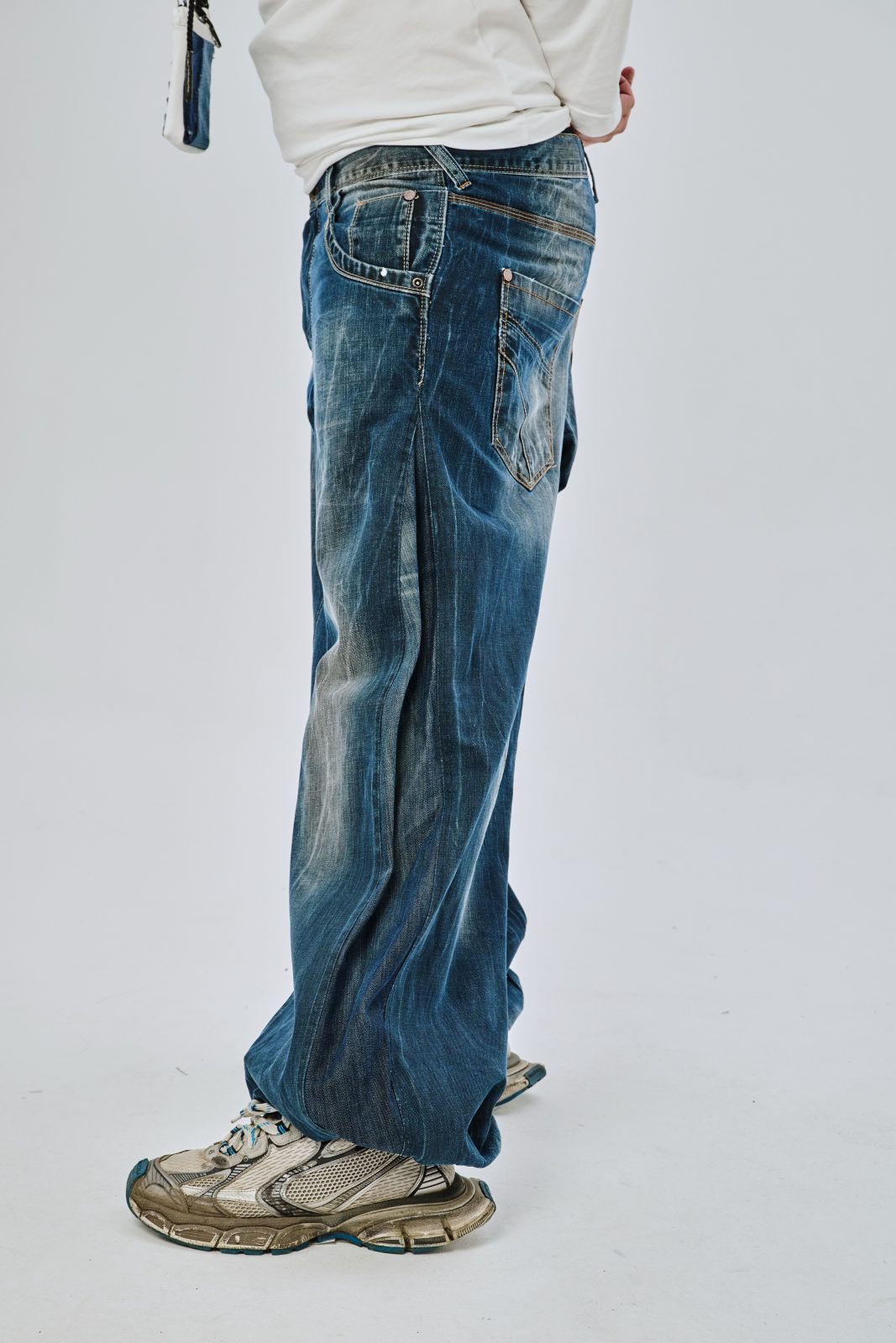 Джинсы цвета мрамора для уверенных любителей кастома. Джинсы прошли базовый уровень и послужили прототипом многих других изделий в каталоге distxrtedcustom.