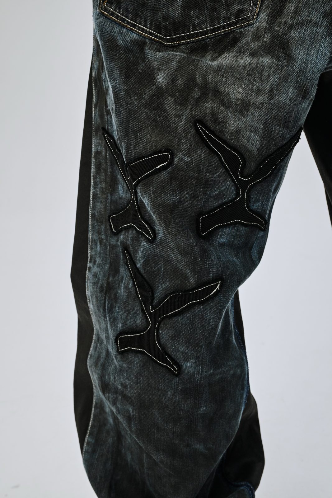 Спецзаказ, выполненный для рэп-артиста YARDIE. Несколько этапов окрашивания, фирменный логотип артиста и глубокий темный цвет. Все расширения по бокам выполнены из вощеного хлопка. В модель встроена защита от обвинений в плохом вкусе.