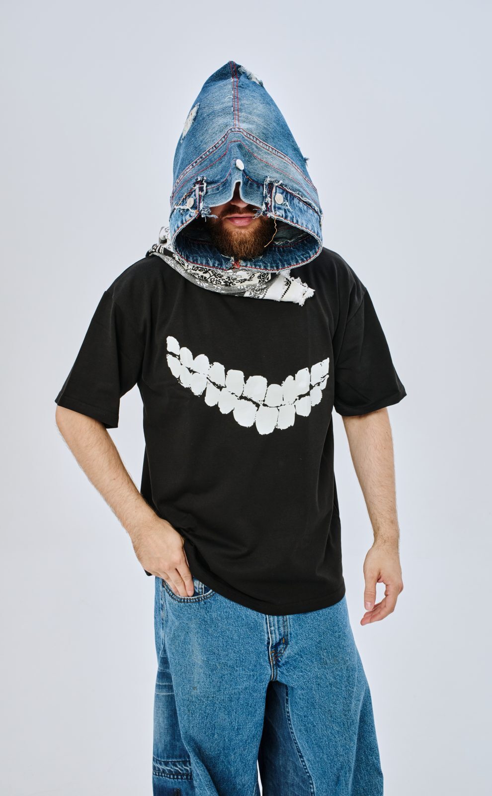Капюшон ручной работы из денима. Создан в Казахстане для настоящих рэперов и их подруг с любовью. Межсезонный облегченный вариант, который вряд ли защитит в морозную погоду, но придется кстати в условиях легкого ветра. Имеет застежку на шее. Один размер, унисекс, единственный экземпляр в своем роде.