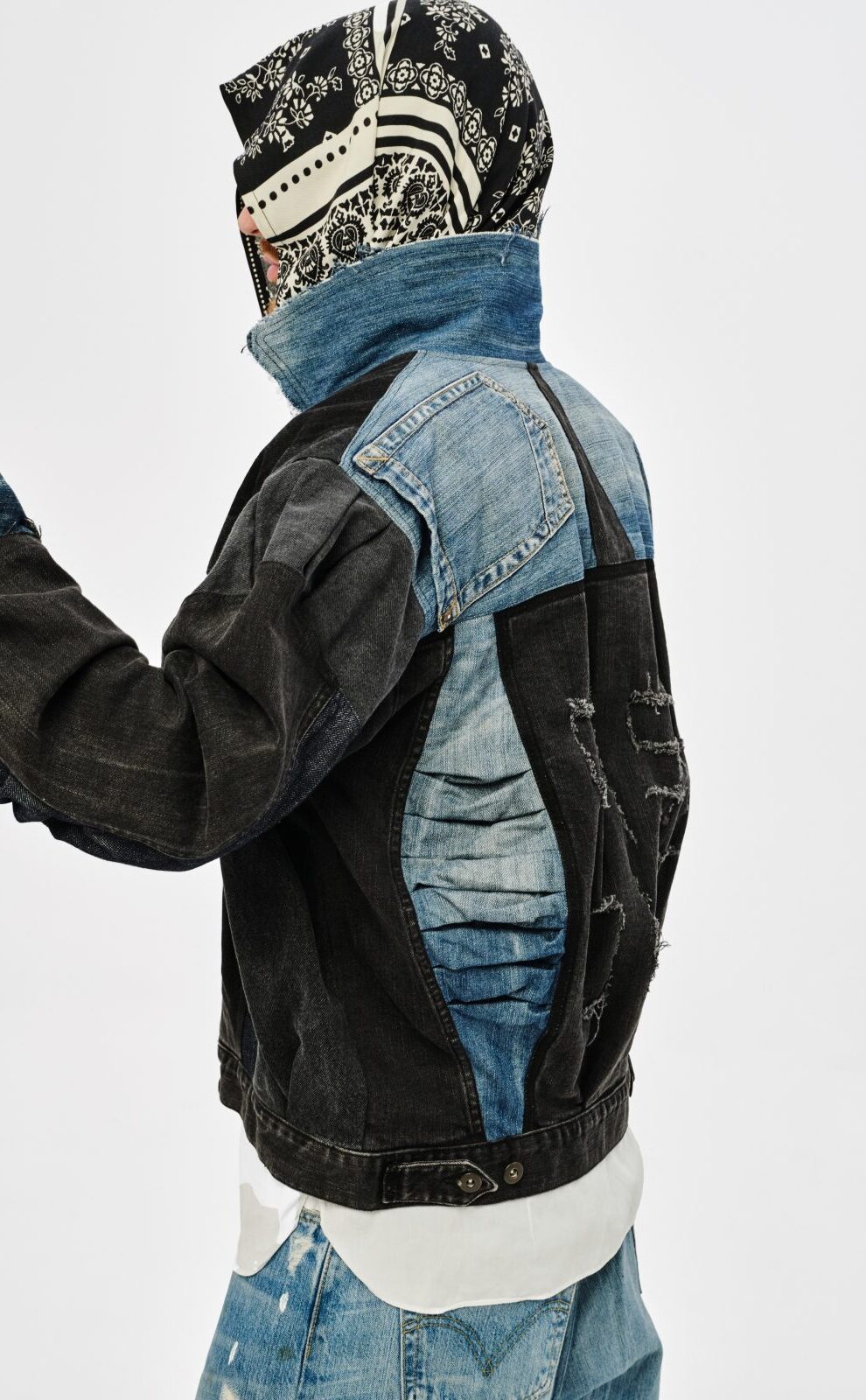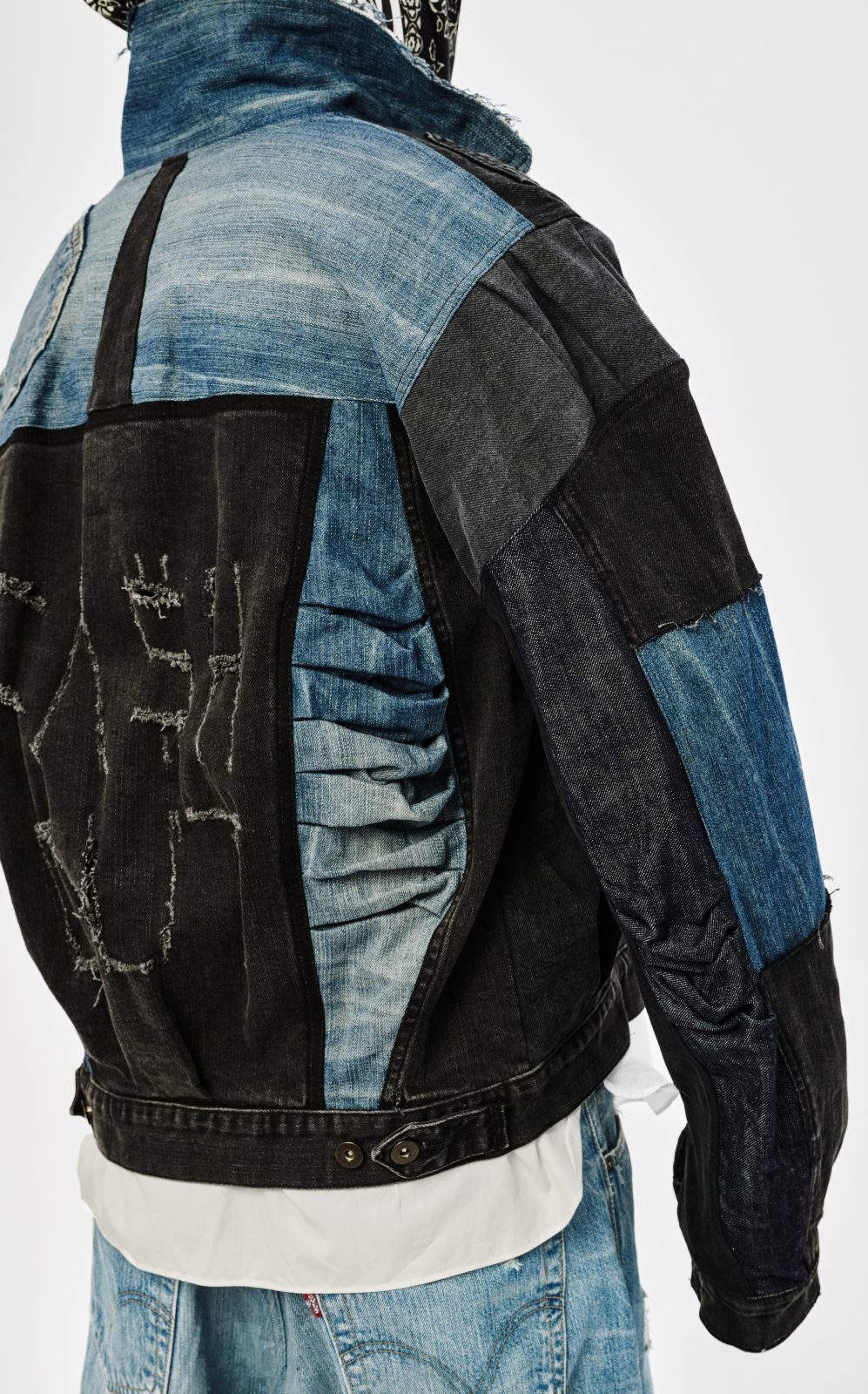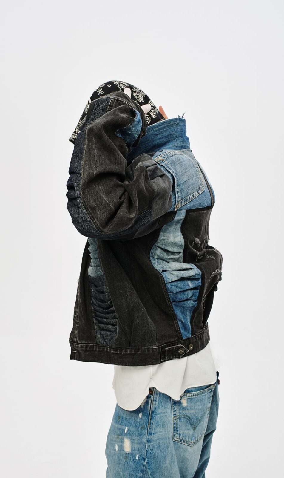 Один из хайлайтов самой свежей коллекции distxrtedcustom. Куртка CASH OUT отличается характерными «жабрами» на передней части, которые мы часто используем при создании курток. Помимо этого, сочетание темного, мраморного и синего денима создают уникальную палитру, а принт сзади изготовлен вручную ювелирным лобзиком нашим мастером Александром.