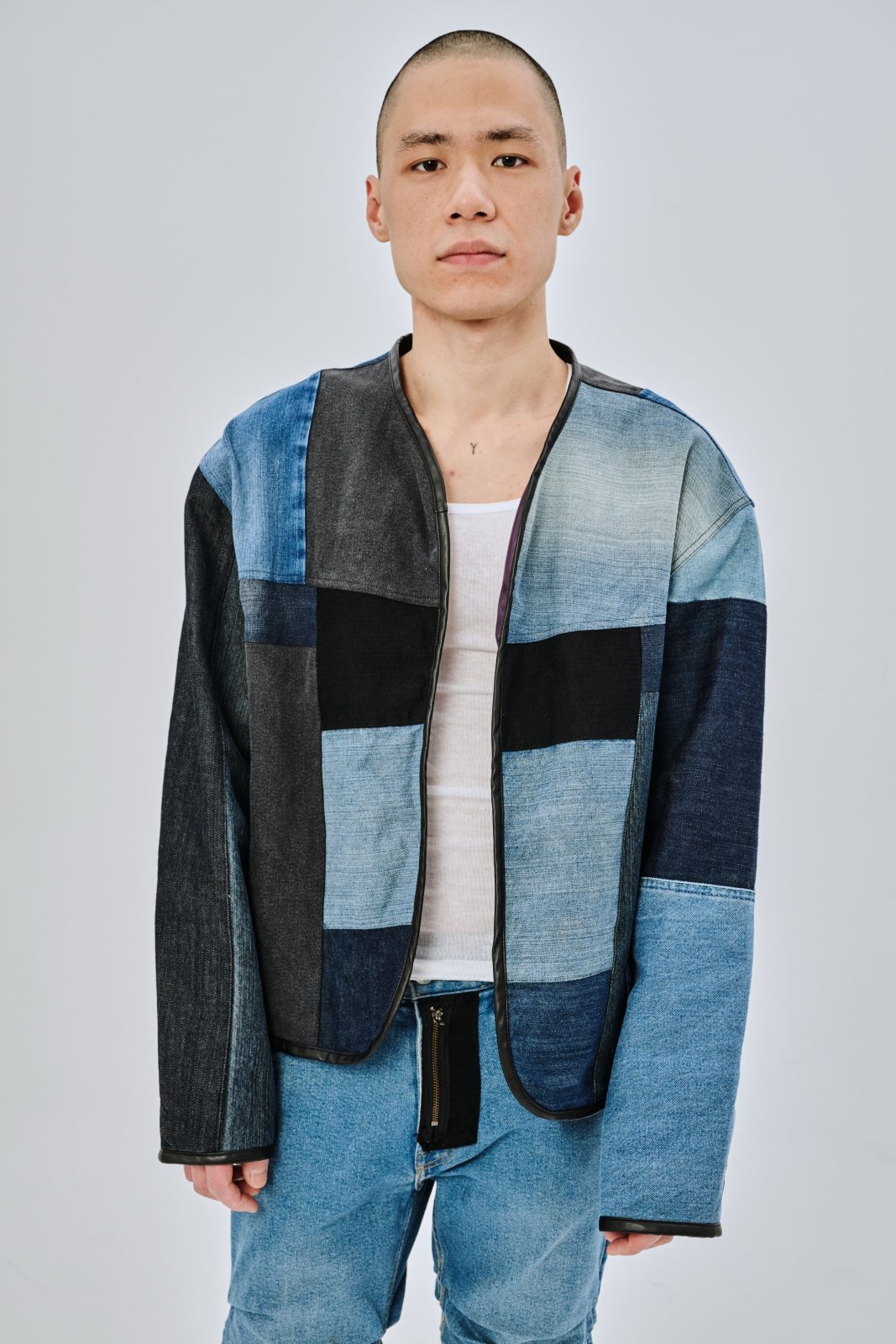 Куртка «Лего» из одноименной капсулы собрана с использованием множества разных джинс. Геометрические узоры и кожаная бейка в качестве окантовки оставят неизгладимое впечатление на окружающих.