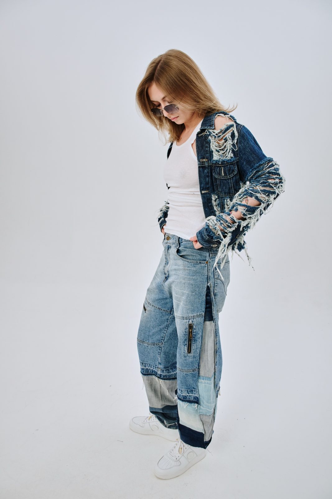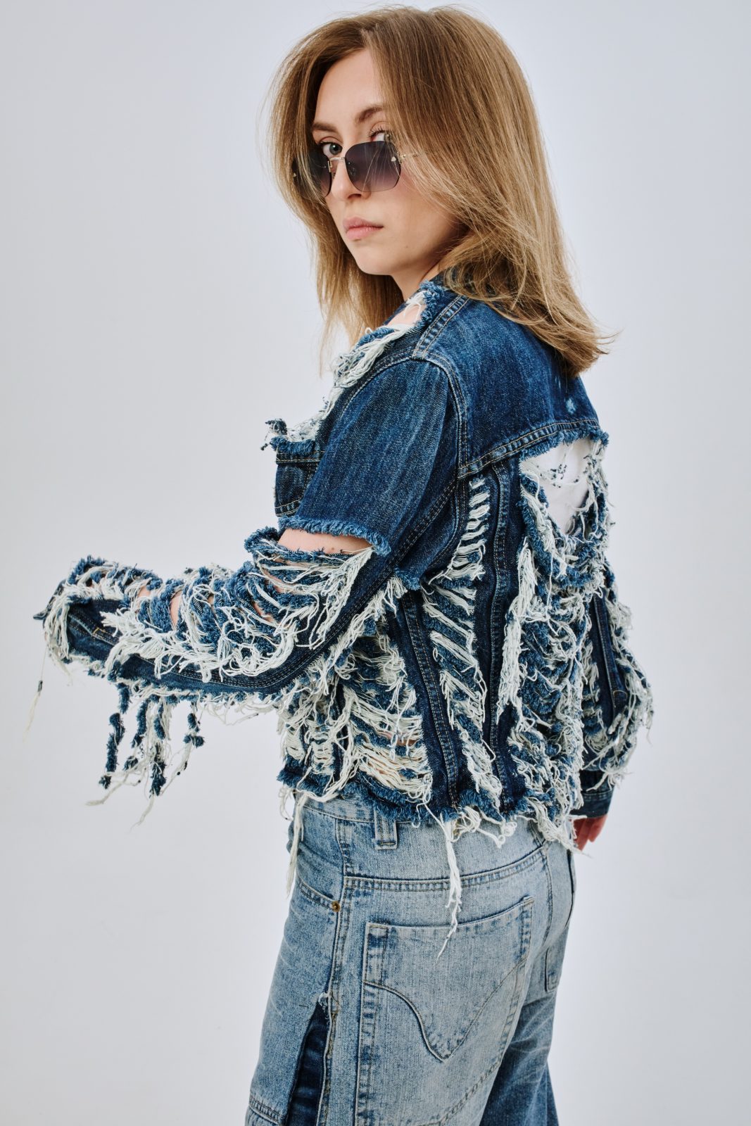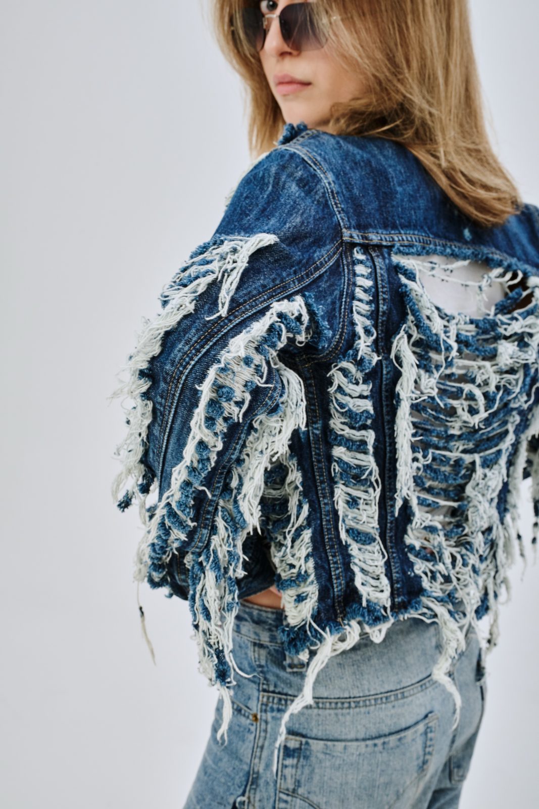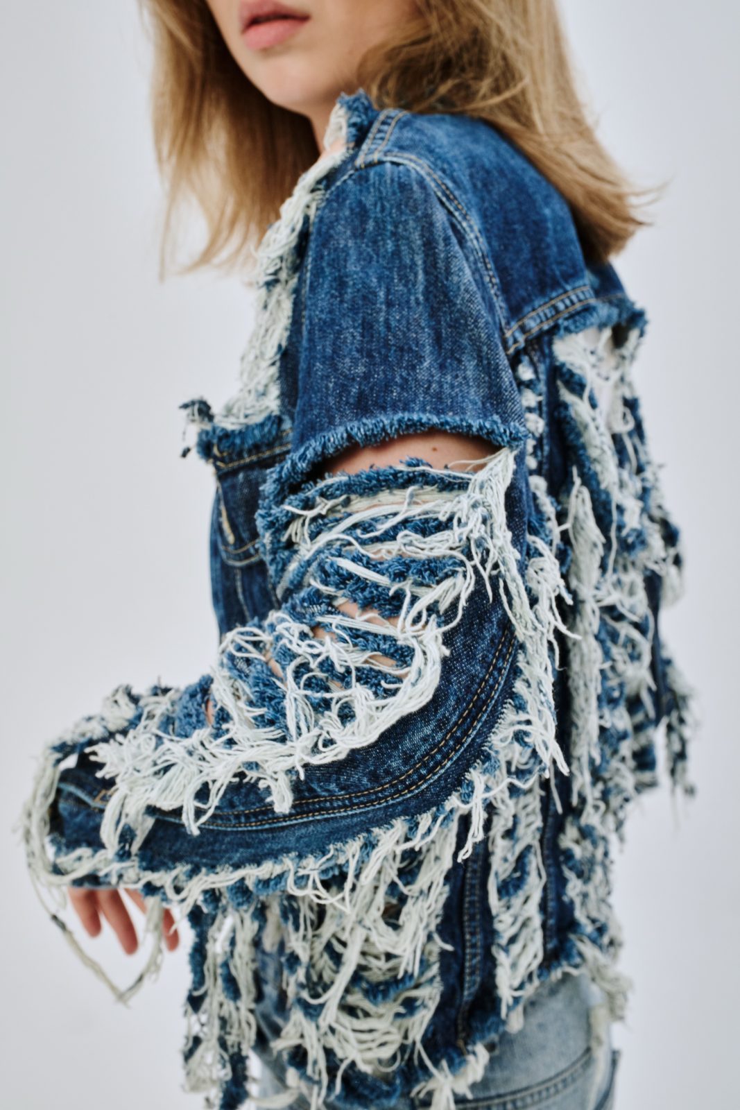 Идея проста, исполнение идеально. Летняя куртка с множеством красивых случайностей в виде бесконечных махрушек обеспечивает качественную вентиляцию. За глубокий цвет морской волны отвечает вываренный деним.