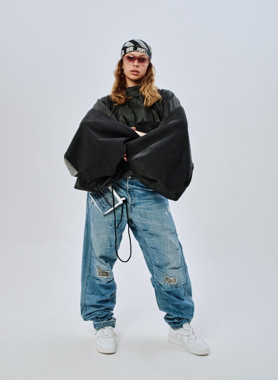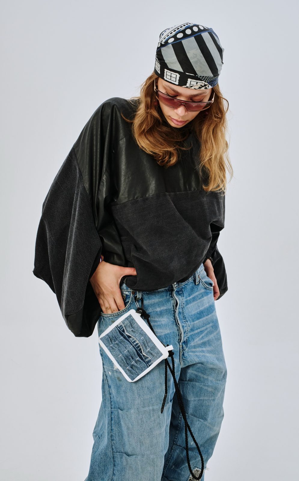 Пышные формы позволят спрятать внутри не только все ваши скелеты, но и оставить в недоумении всех проходящих мимо. Манящая глубина черного и разнообразие серого цветов не позволят оторвать глаз от этой красоты. Вощеный хлопок в сочетании денима делают это единственное в своем роде произведения искусства уникальным притягателем посторонних глаз.
