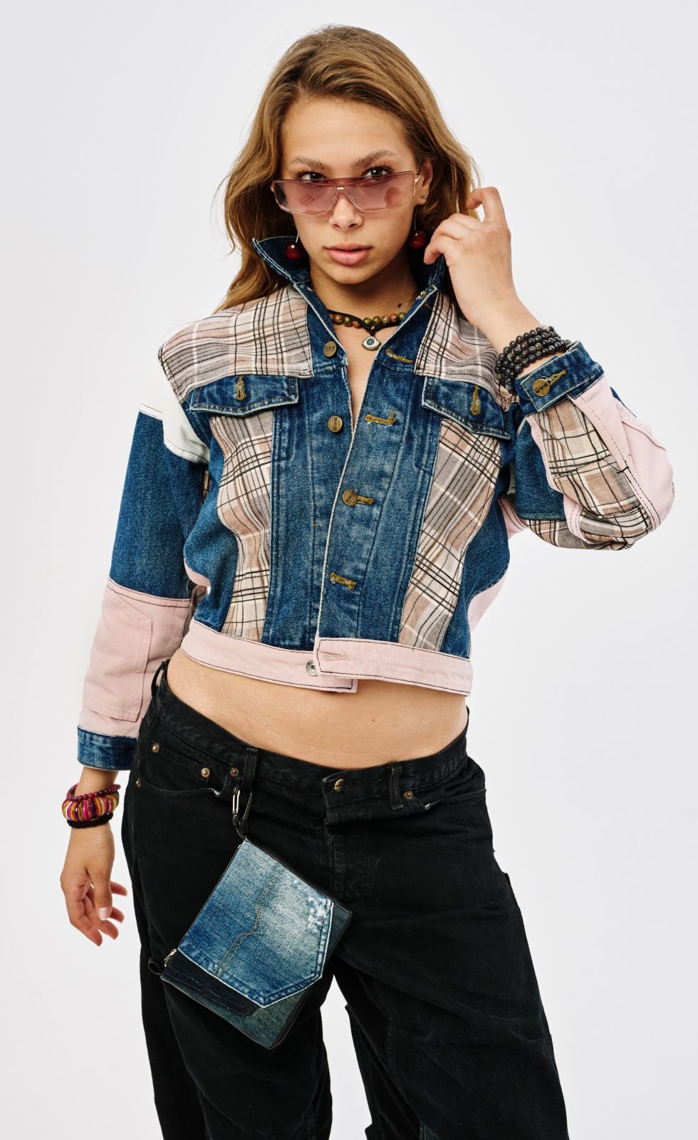 Куртка на небольшого парня или девушку из трех видов денима и клетчатого хлопка. Сдержанная и стильная модель не бросается в глаза, но медленно привлекает к себе внимание.