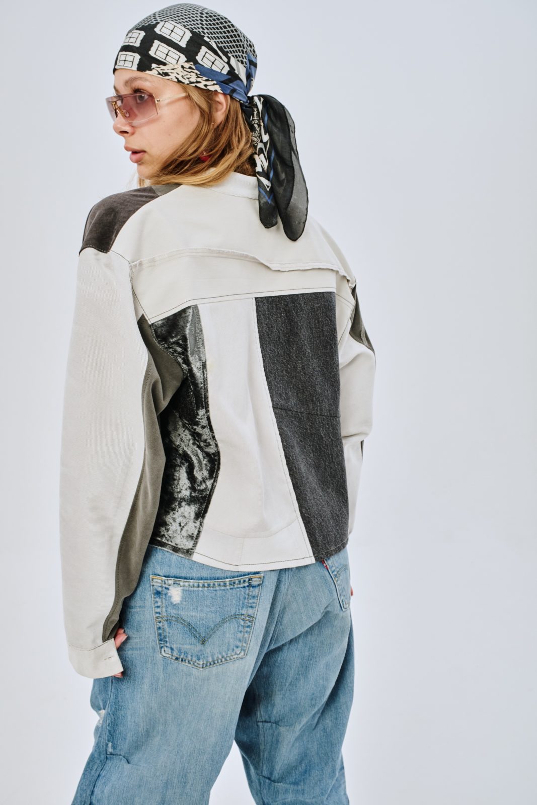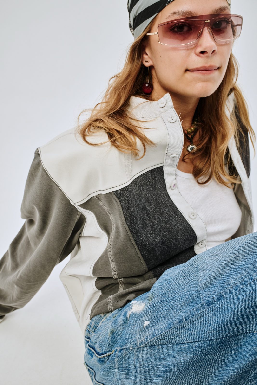 Классические лекала курток distxrtedcustom были использованы для изготовления этой рубашки в спокойных тонах. Создана для вольных слушателей на официальных мероприятиях.
